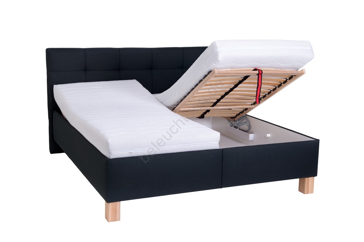 • Das Doppelbett bietet eine Kopfteilverstellung und höhenverstellbare Füße für maximale Entspannung.