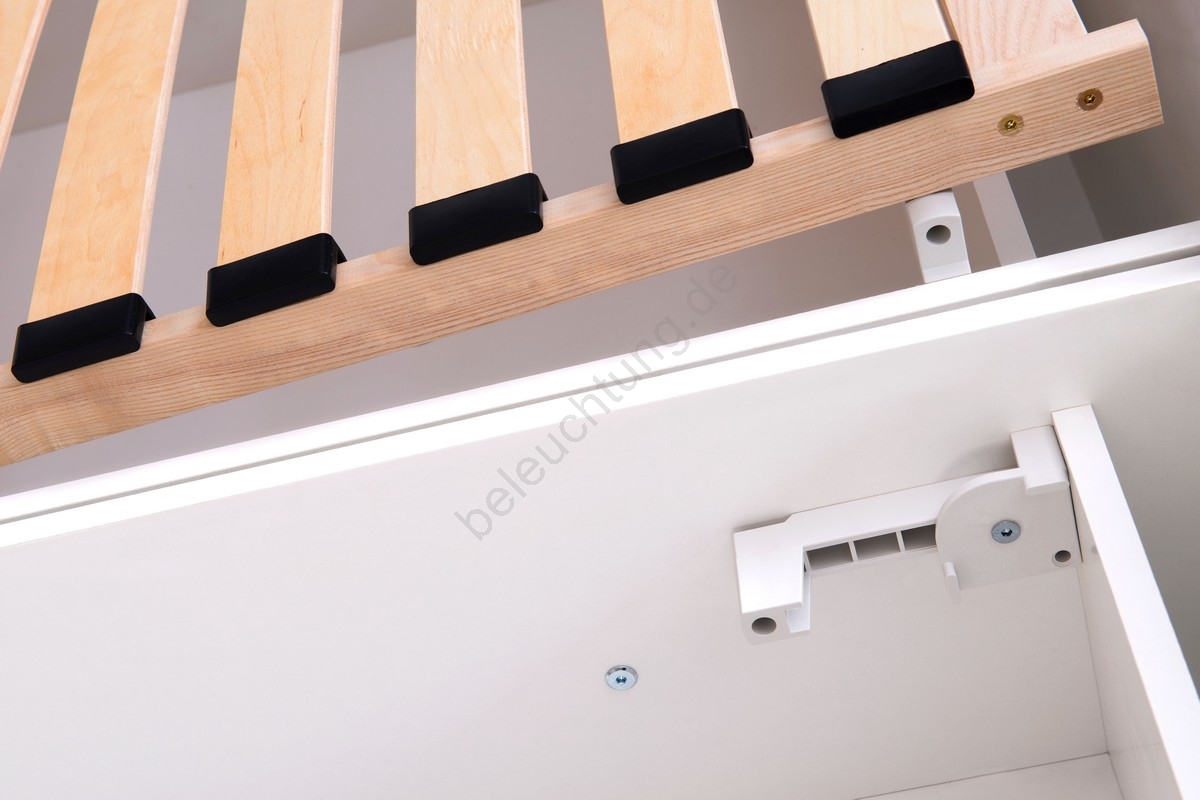 • Das Bett ist mit großem Stauraum zur Aufbewahrung von Bettwäsche und weiteren Gegenständen ausgestattet.