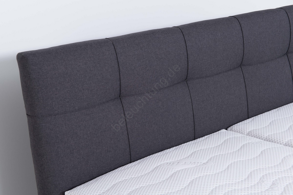• Gepolstertes Doppelbett mit lose aufgelegten Matratzen besticht durch ein detailreich ausgearbeitetes, elegant gesteppetes Kopfteil.