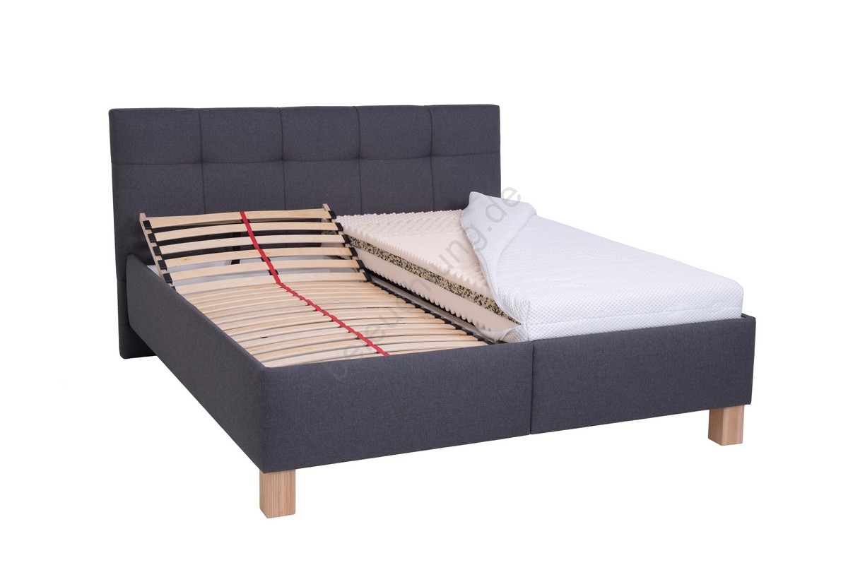 Polsterbett MARIA 160x200 cm mit Matratze und Stauraum, grau