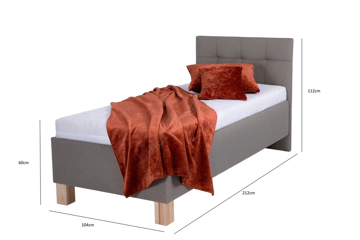 • Gepolstertes Bett mit Matratze und Stauraum MARIA ONE 90×200 cm, grau