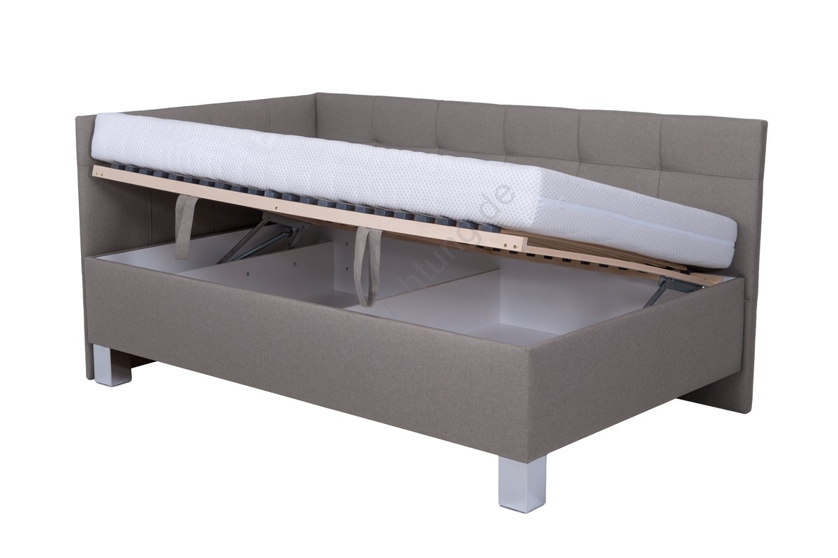 Komfortables, gepolstertes Bett MARIA PETITE 120x200 cm mit Matratze und großzügigem Stauraum, taupe