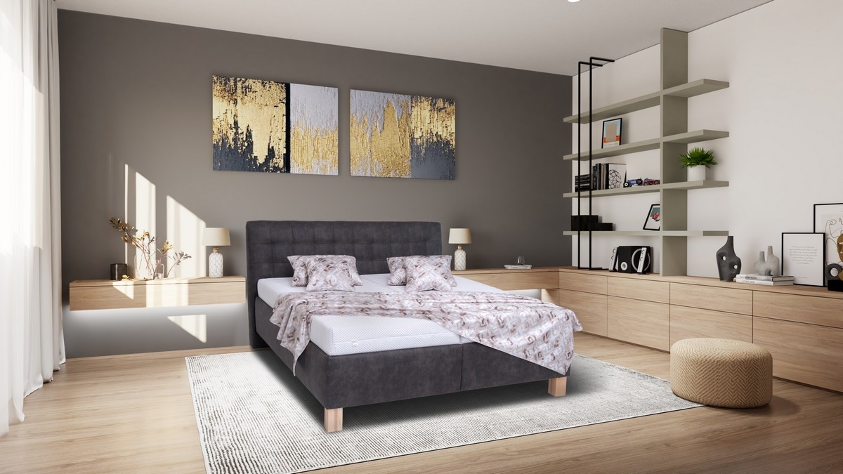 • Das markant gesteppte, elegante Kopfteil verleiht dem Bett ein anspruchsvolles Erscheinungsbild und erhöht den Komfort beim Anlehnen.