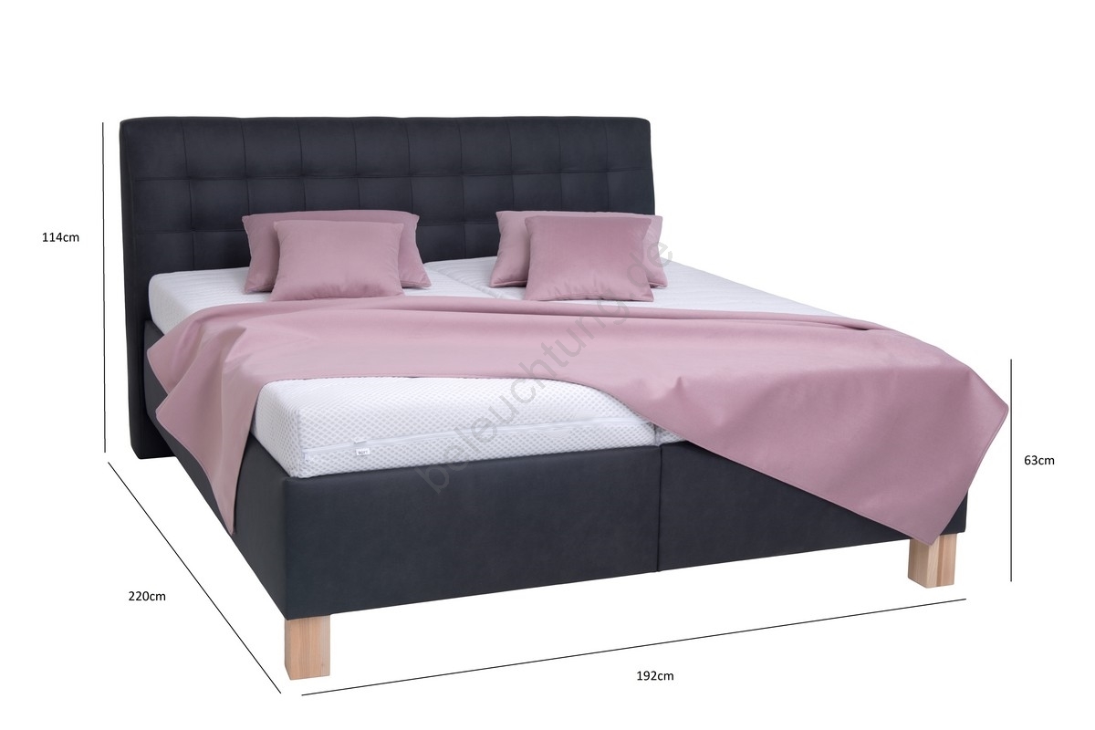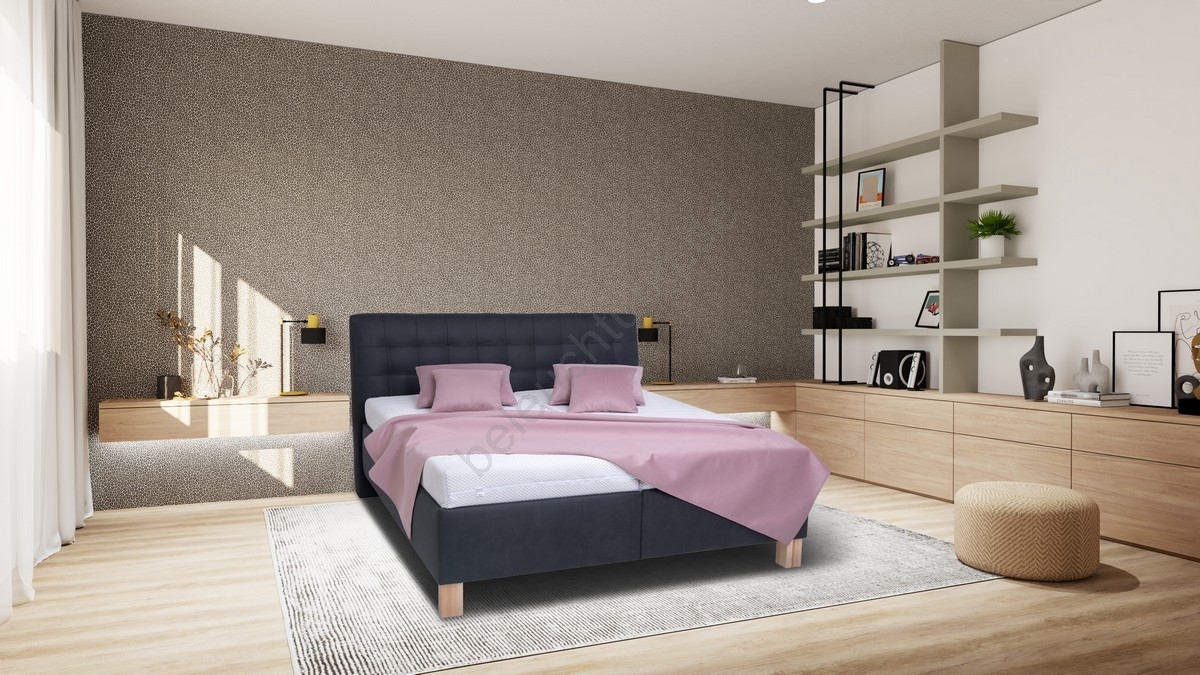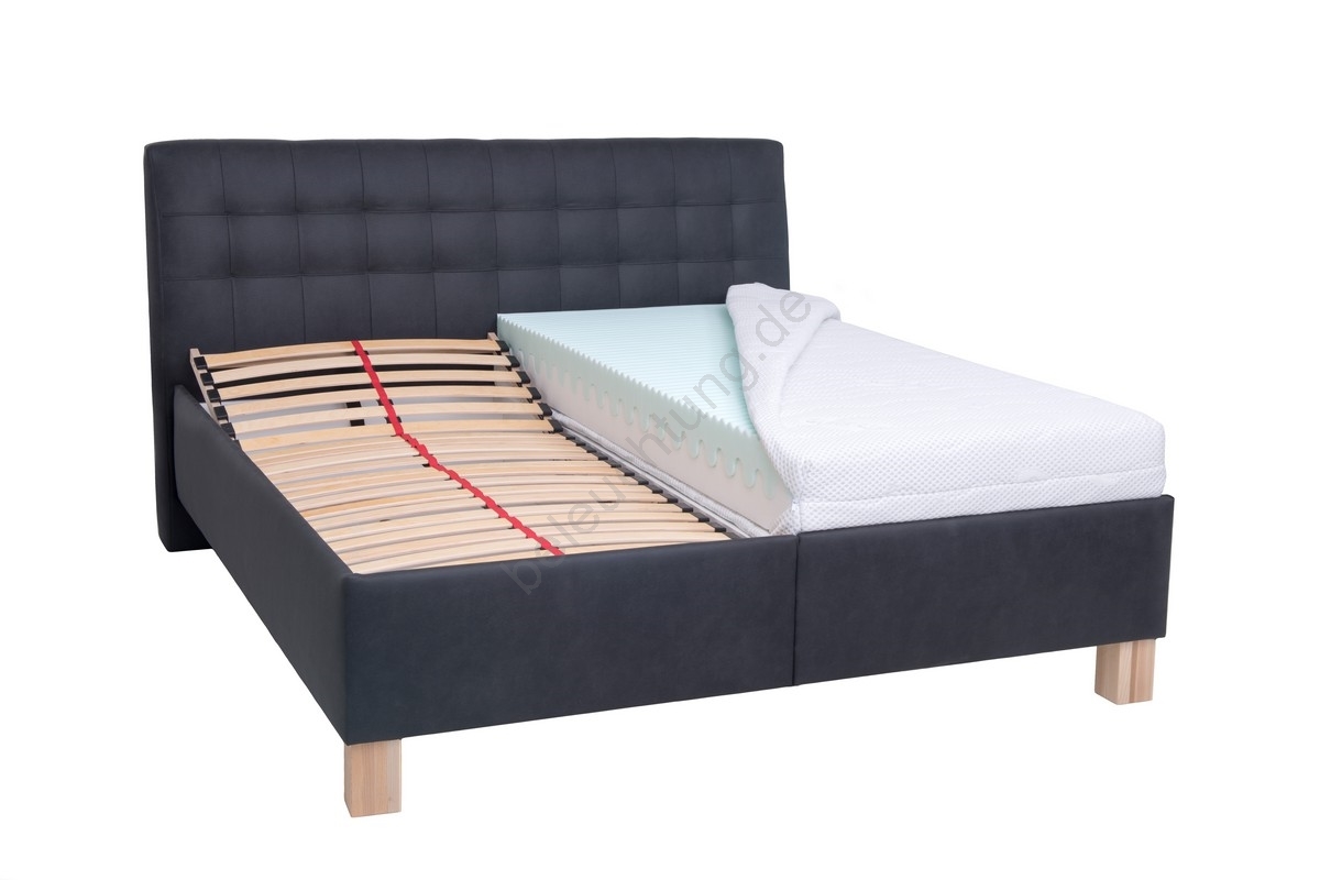 • Gepolstertes Bett VIOLET 180x200 cm, dunkelgrau, inklusive Matratze und praktischem Stauraum