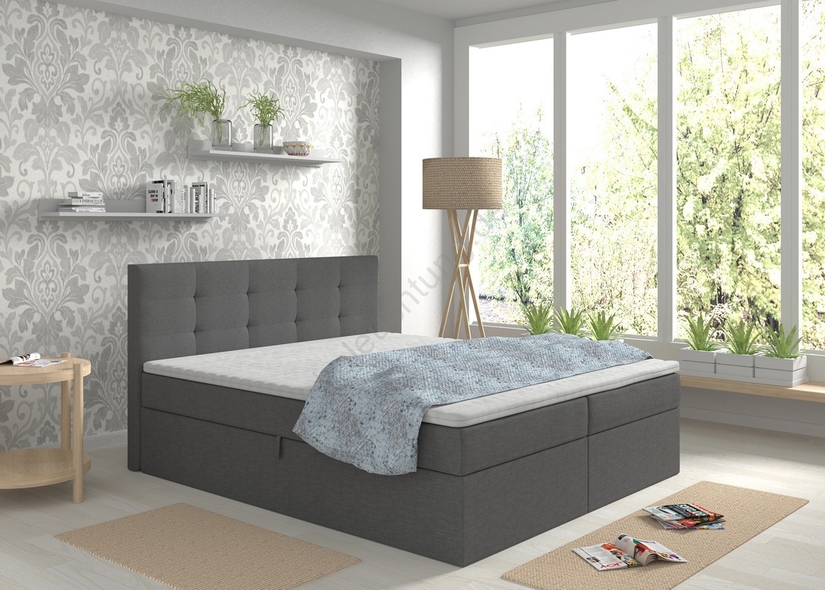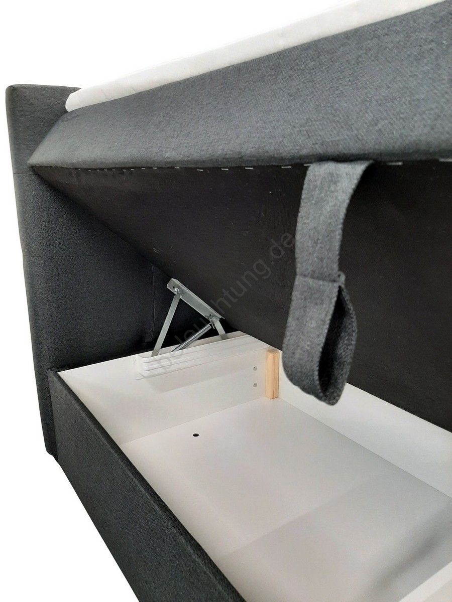 Gepolstertes Bett EMBER 180x200 cm mit Matratzen, Topper und Stauraum, anthrazit