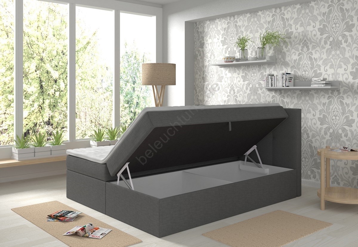 • Gepolstertes Bett EMBER 180x200 cm mit Matratzen, Topper und Stauraum, anthrazit
