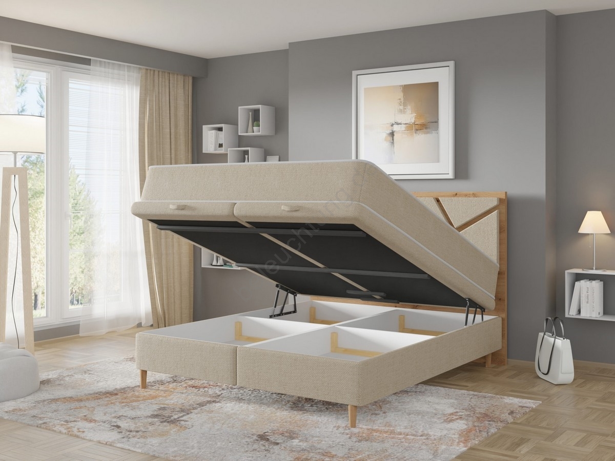 Polsterbett NAOMI 140x200 cm mit Matratzen und Stauraum, beige
