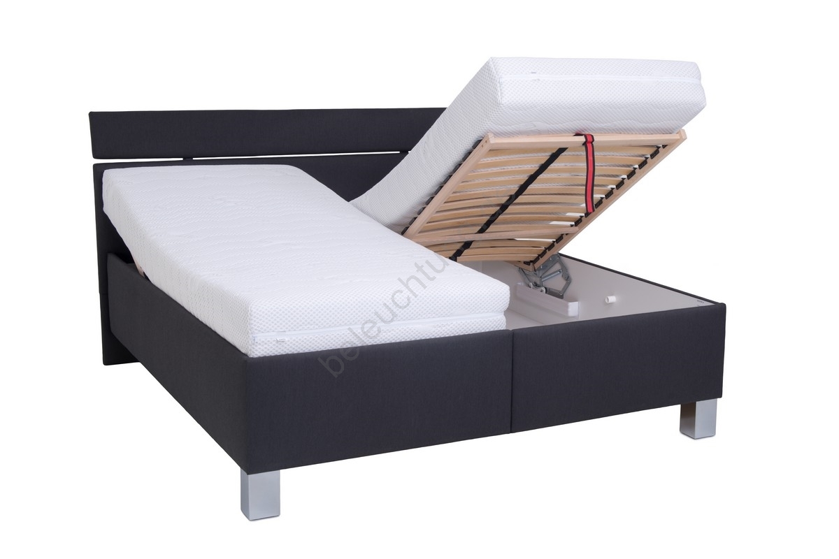 • Das Doppelbett bietet eine Kopfteilverstellung und höhenverstellbare Stellfüße am Fußende für maximale Entspannung.