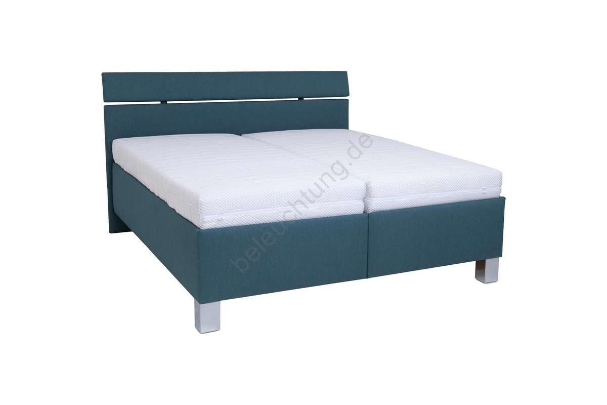 • Gepolstertes Doppelbett mit lose aufgelegten Matratzen, das maximalen Komfort und praktische Funktionen für erholsamen Schlaf bietet.
