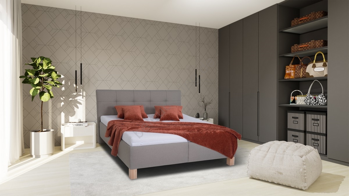• Polsterbett MARIA 180x200 cm mit Matratze und Bettkasten, grau