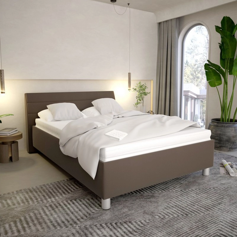 Polsterbett DALMA 140x200 cm, grau/braun, mit Bettkasten und Matratze