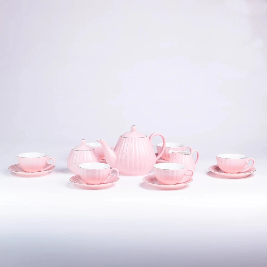 Porzellan-Kaffeeset, 15-teilig, rosa