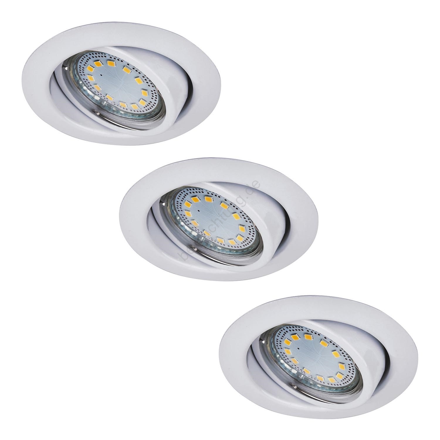 • Set aus drei Einbau-Spotleuchten für die Deckenmontage.