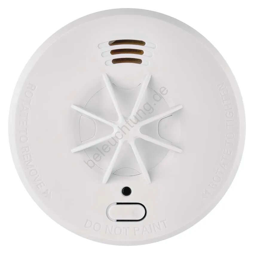 • Funktionen: Testtaste, Warnung bei schwacher Batterie, Alarm-Stummschaltung (HUSH).