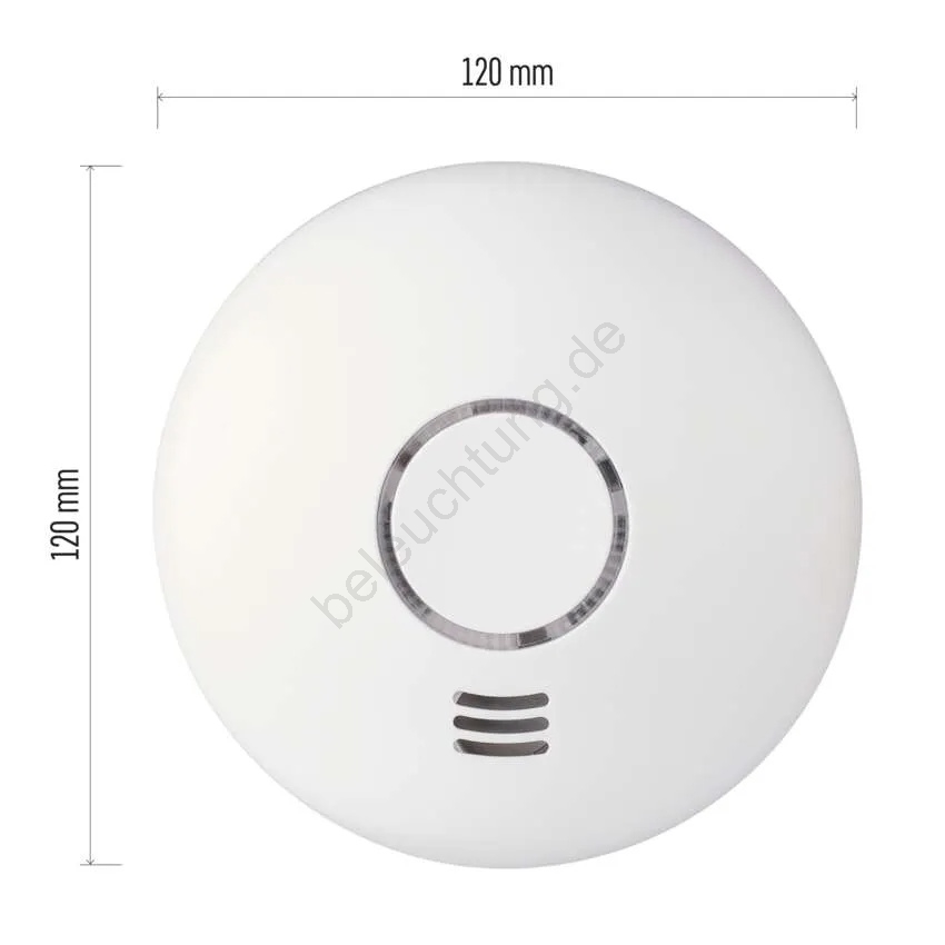 • Funktionen: Testtaste, Batteriewarnung, optische Anzeige.