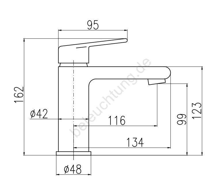 • Stand-Waschtischarmatur ohne Ablaufgarnitur.