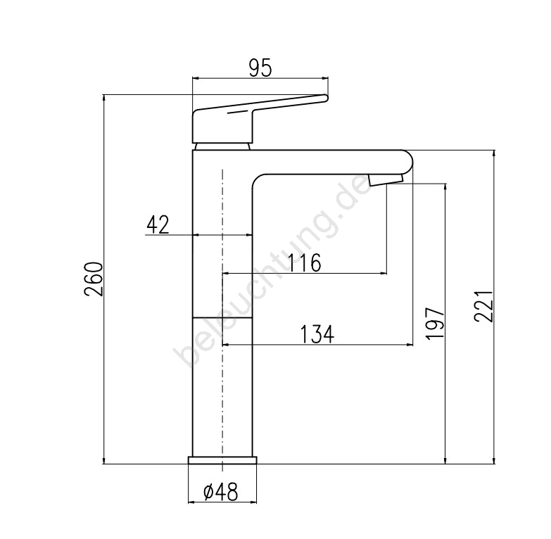 • Stand-Waschtischarmatur ohne Ablaufgarnitur.