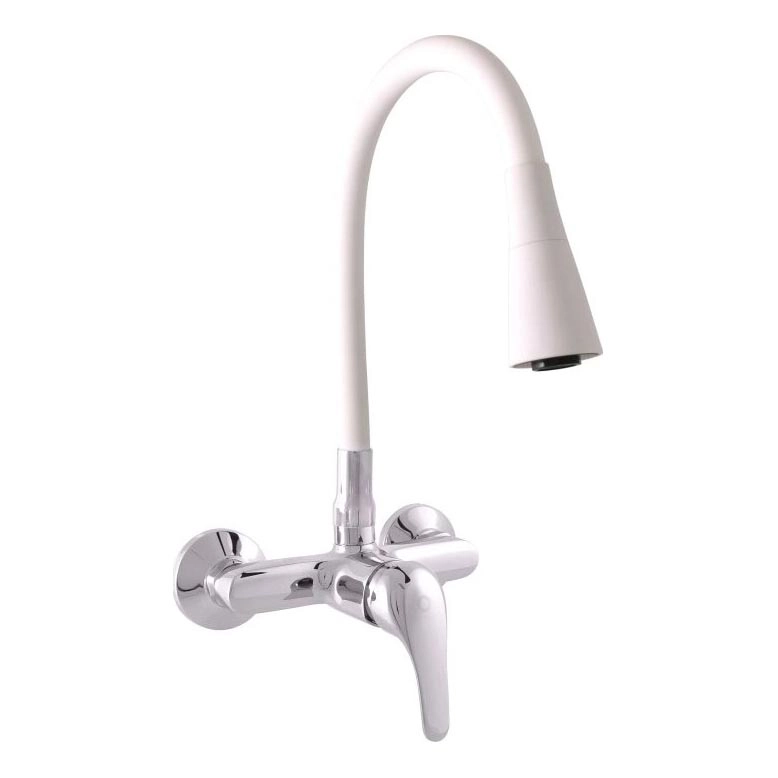 • Wandarmatur für Spüle mit flexiblem, schwenkbarem Auslauf und Brause.