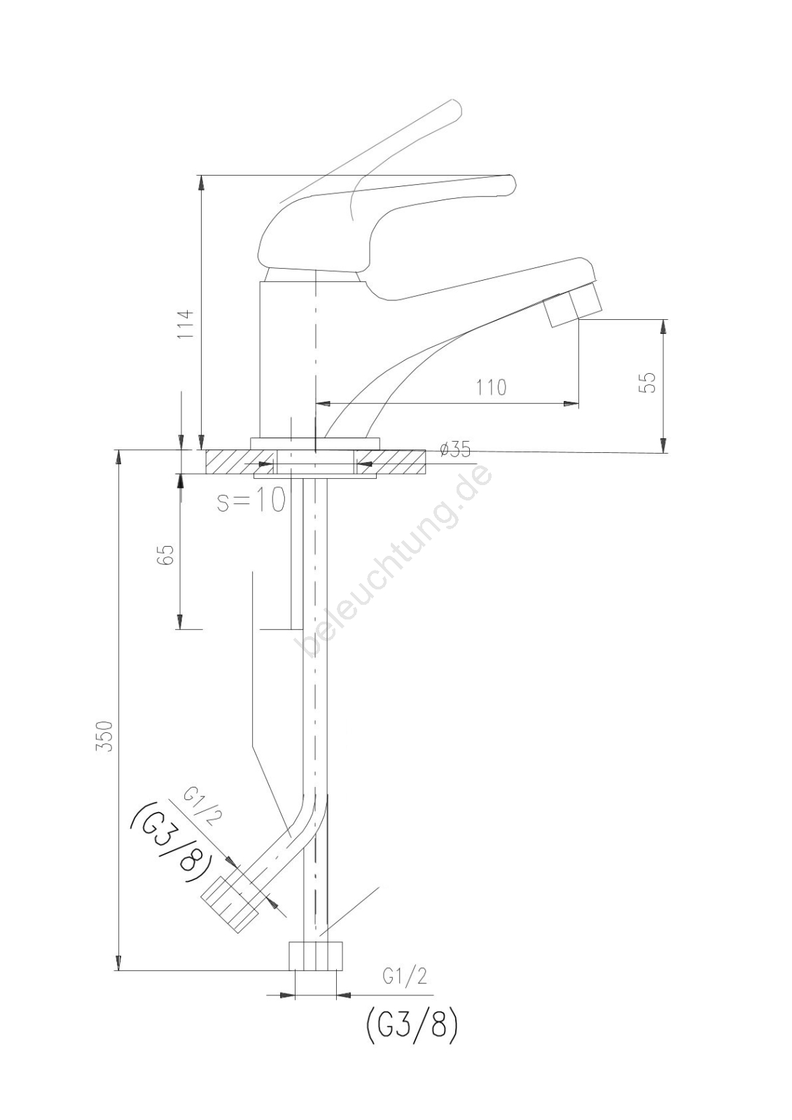 • Deckmontierte Waschtischarmatur ohne Ablaufgarnitur.