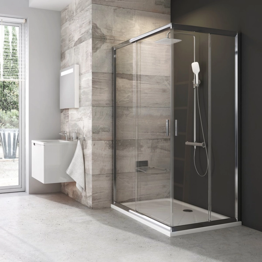 • Die komplette Kabine besteht aus zwei Schiebetüren, die zusammen eine funktionale und ästhetisch klare Lösung für jedes Badezimmer schaffen.