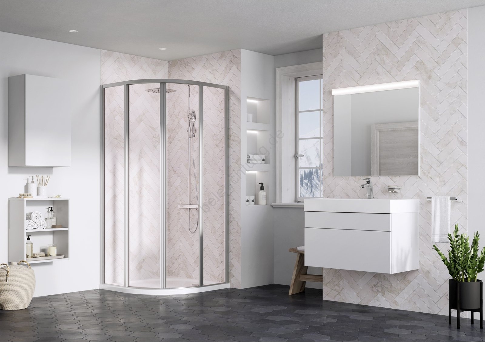 • Für die tiefe Duschwanne Sabina wird die verkürzte Supernova SKCP4 Sabina in einer reduzierten Höhe von 1700 mm angeboten.
