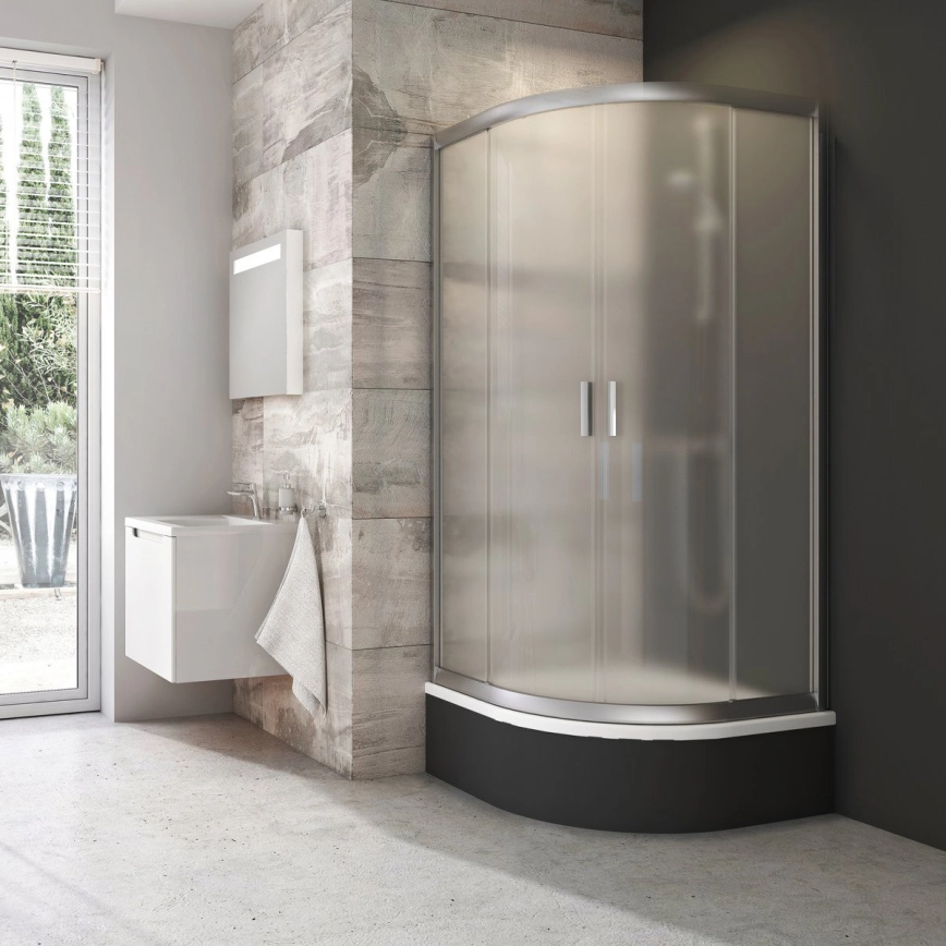 • Die vierteilige, viertelkreisförmige Duschkabine Blix in elegantem Design mit einer blickdichten Kunststofffüllung im Dekor Grape ist eine verlässliche Lösung für das tägliche Duschen.