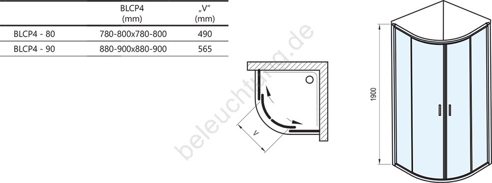 • Mit einem Radius von 550 mm und einer Höhe von 190 cm bietet sie ausreichend Platz für komfortables Duschen, ohne klobig zu wirken.