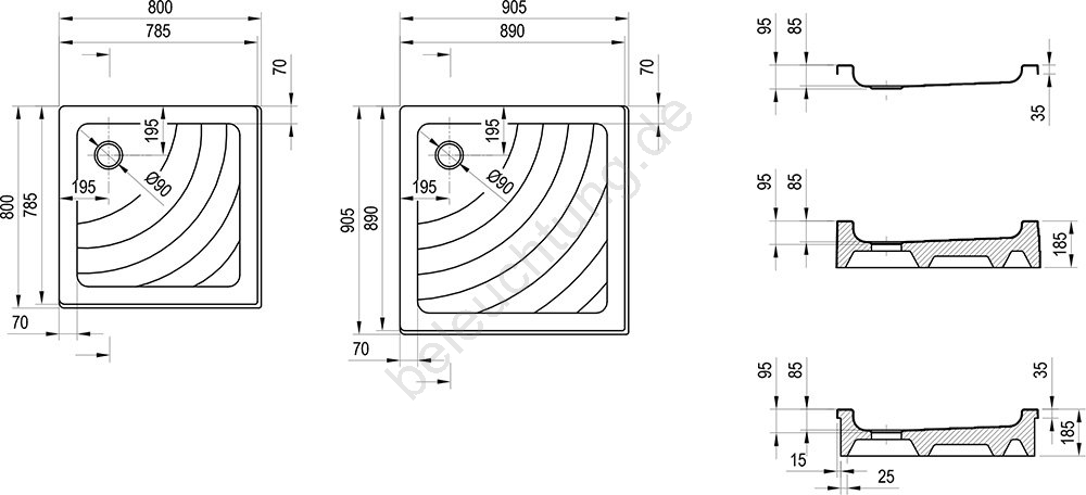 • Tiefe der Duschwanne: 9 cm.