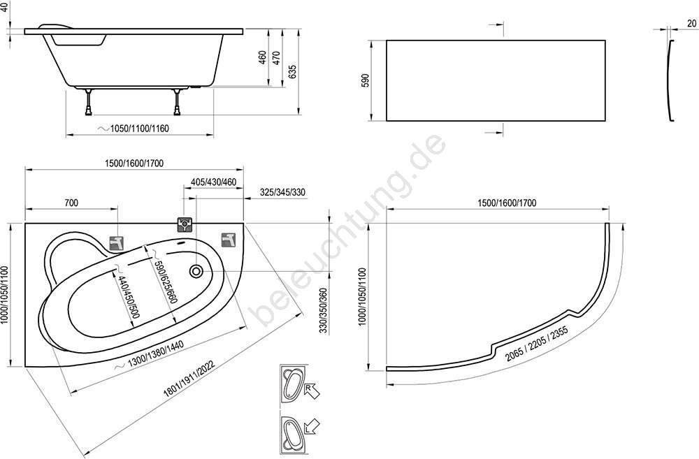 • Die Wanne kann mit einer Frontverkleidung ausgestattet werden; diese ist nicht im Lieferumfang enthalten und separat erhältlich.