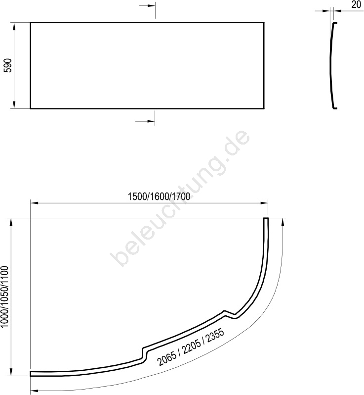 • Abdeckplatte in den Maßen 2355 x 590 mm.