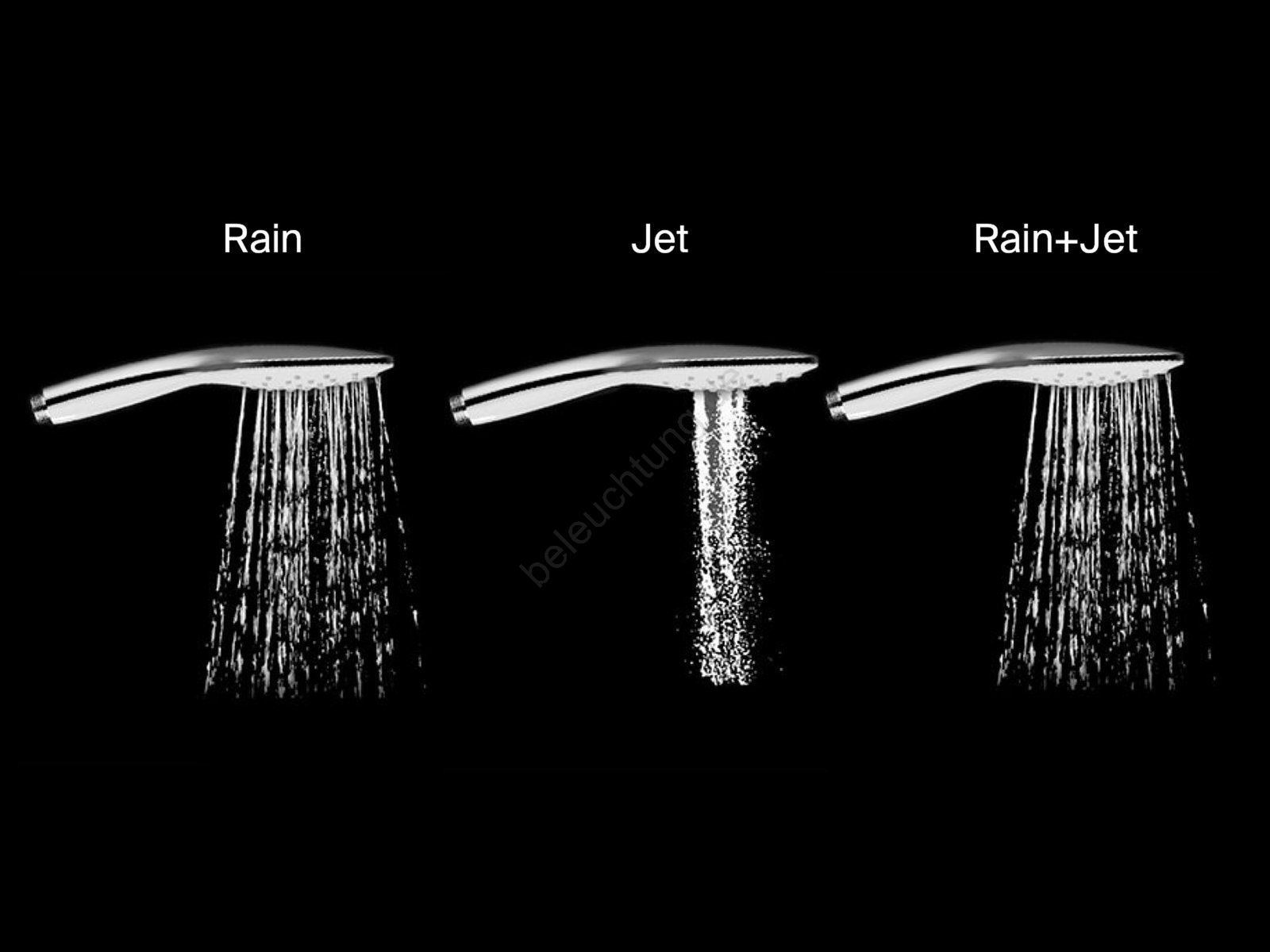 • Das Set enthält außerdem eine Handbrause mit 3 verschiedenen Strahlarten.