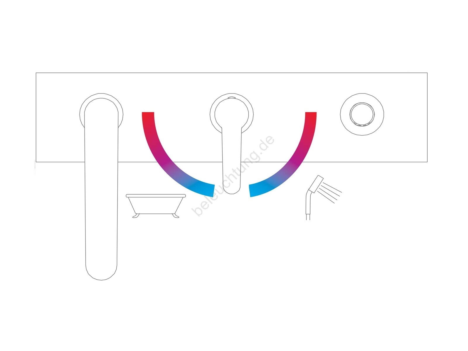 • Bewegt man den Hebel nach rechts (Dusche) bzw. nach links (Bad), wird nur die Wassertemperatur geregelt; die Durchflussmenge bleibt konstant.