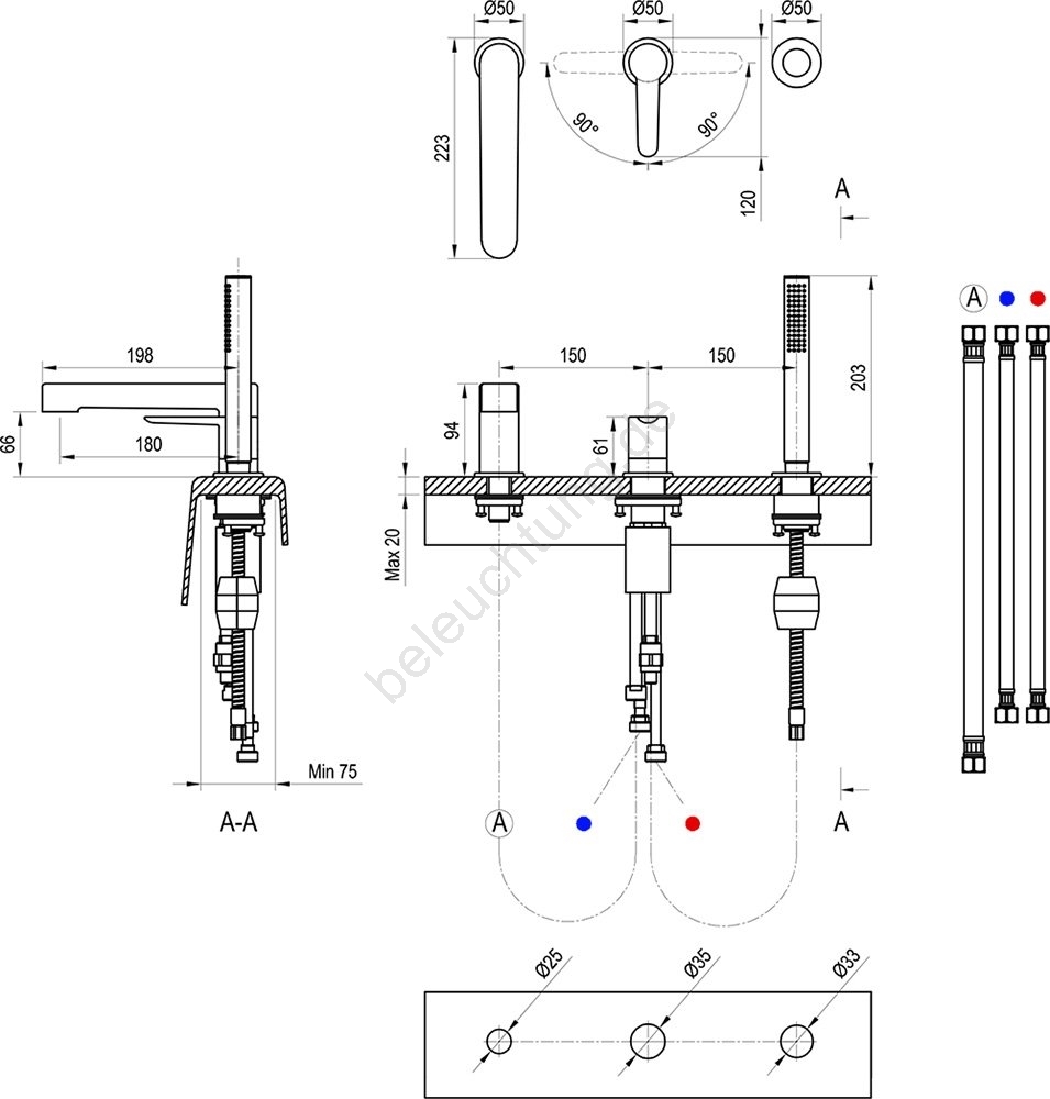 • Diese 3-Loch-Wannenarmatur ist ein elegantes Accessoire für jedes Badezimmer.