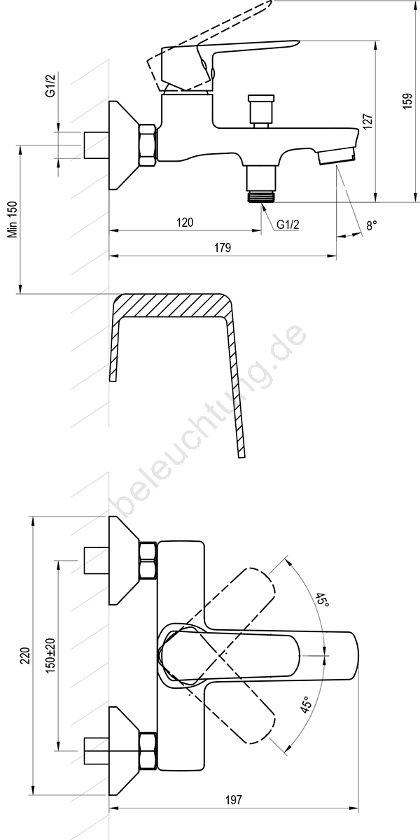 • Einhebel-Badewannenarmatur in Chromausführung.