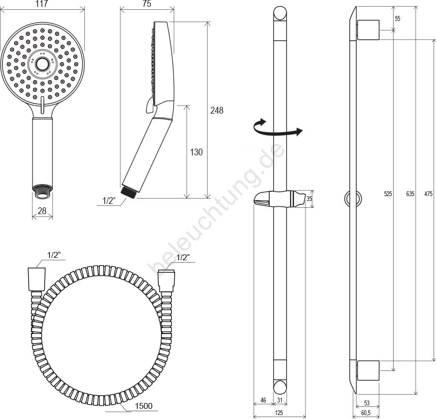 • Geeignet für Dusch-, Badewannen- und Unterputzarmaturen sowie Thermostatarmaturen. Die aus Vollmessing gefertigte Stange verfügt über eine Einhandverstellung des Duschhalters.
