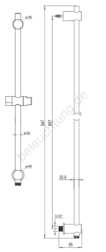 • Unterputzauslass direkt in der Stange mit G1/2" Außengewinde.