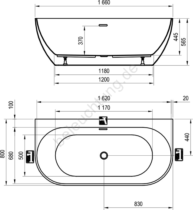 • Die Maße 166 x 80 cm und ein Volumen von 260 l bieten angenehmen Raum für komfortables Baden.