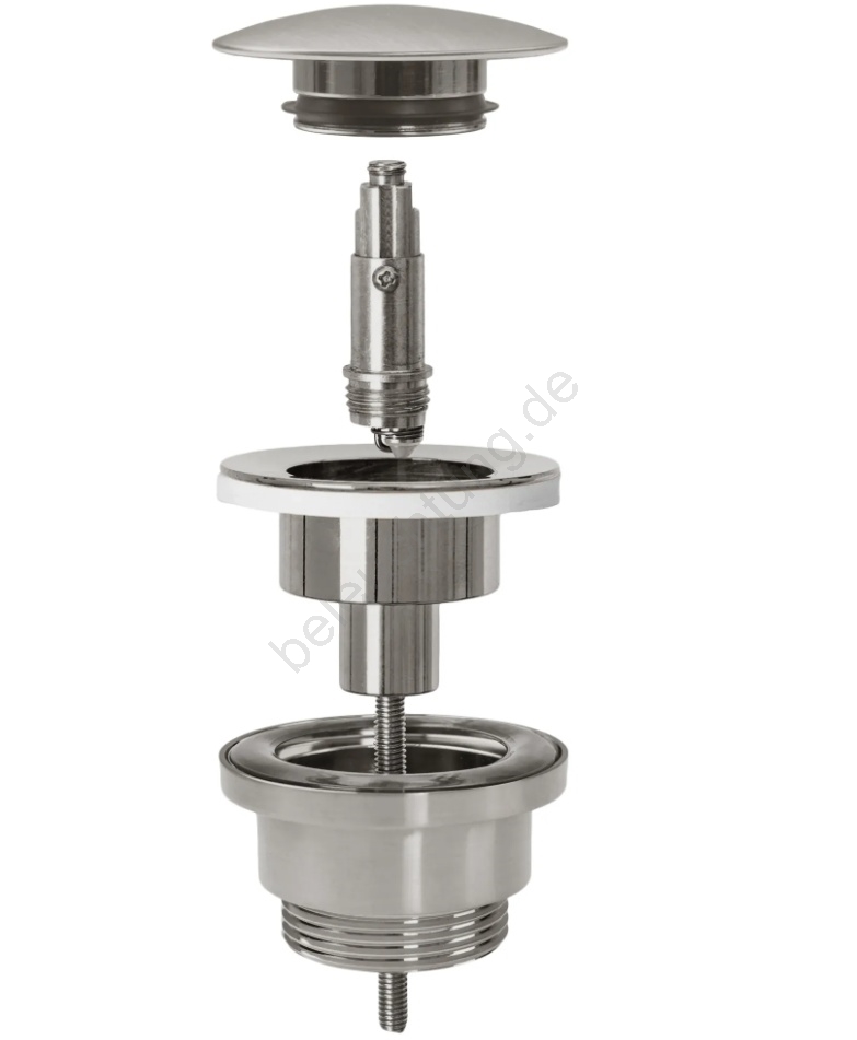 • Mechanismus, der das Öffnen und Schließen des Waschbeckenablaufs durch einfaches Drücken des Stöpsels ermöglicht.