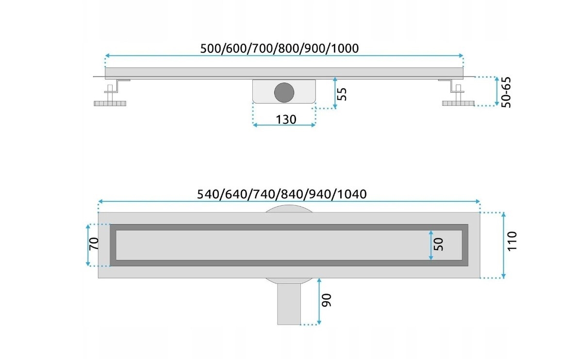 • Dank höhenverstellbarer Füße (50–65 mm) lässt sich der Ablauf problemlos an unterschiedliche Bodenverhältnisse anpassen.