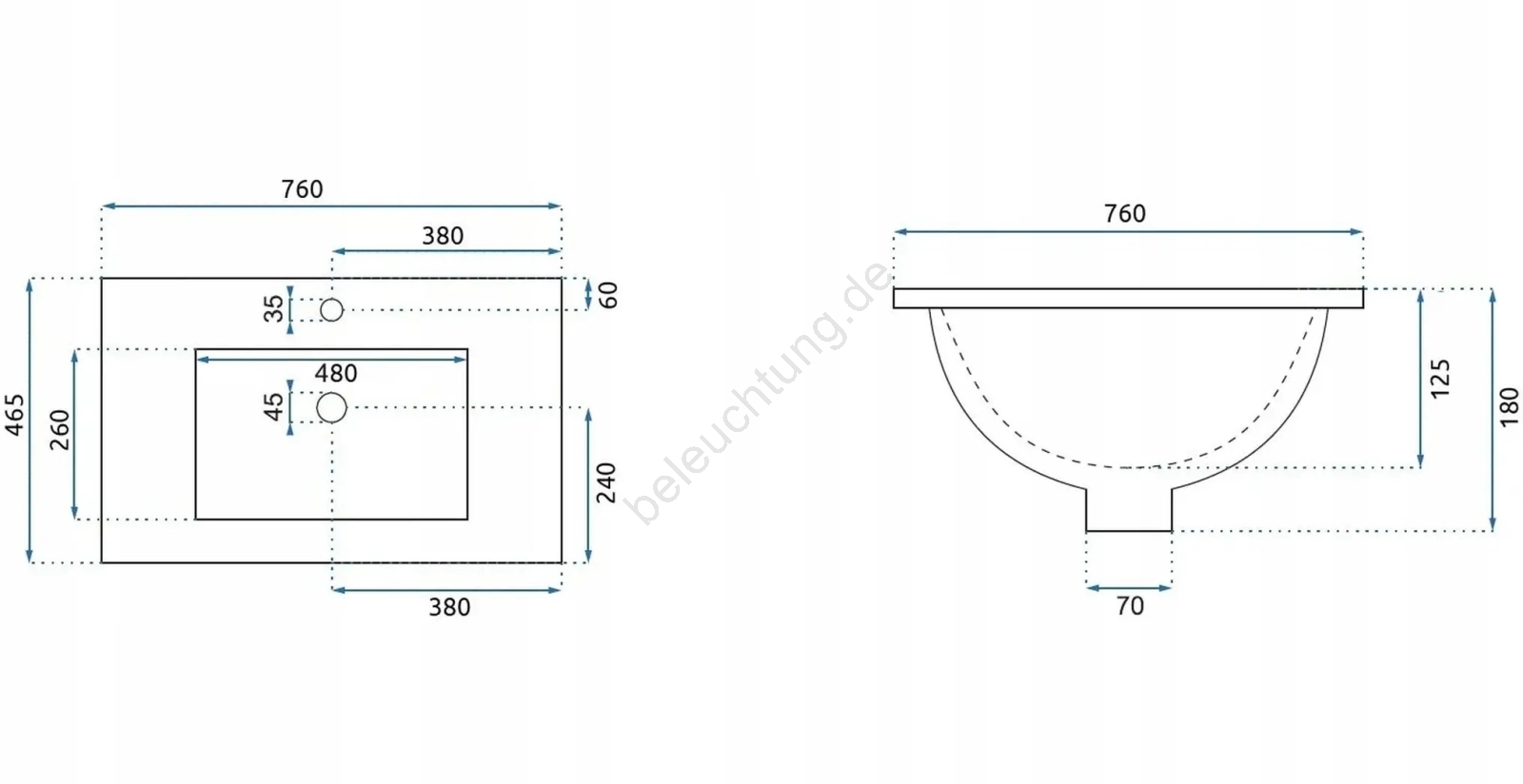 • Waschtischarmatur und Ablaufgarnitur sind nicht im Lieferumfang enthalten.