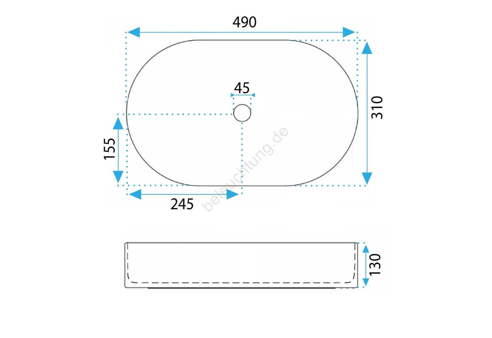 • REA-U6375 - Aufsatzwaschbecken VANDA 31x49 cm Keramik/mattblau