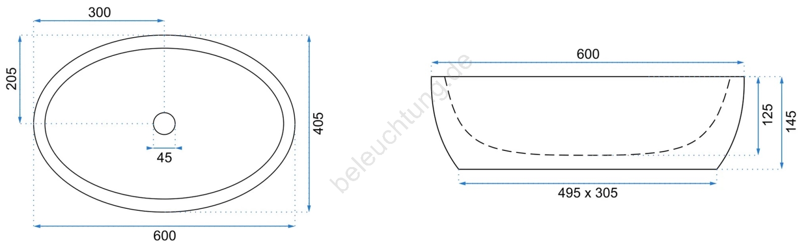 • Waschbeckenarmatur und Ablauf sind nicht im Lieferumfang enthalten.