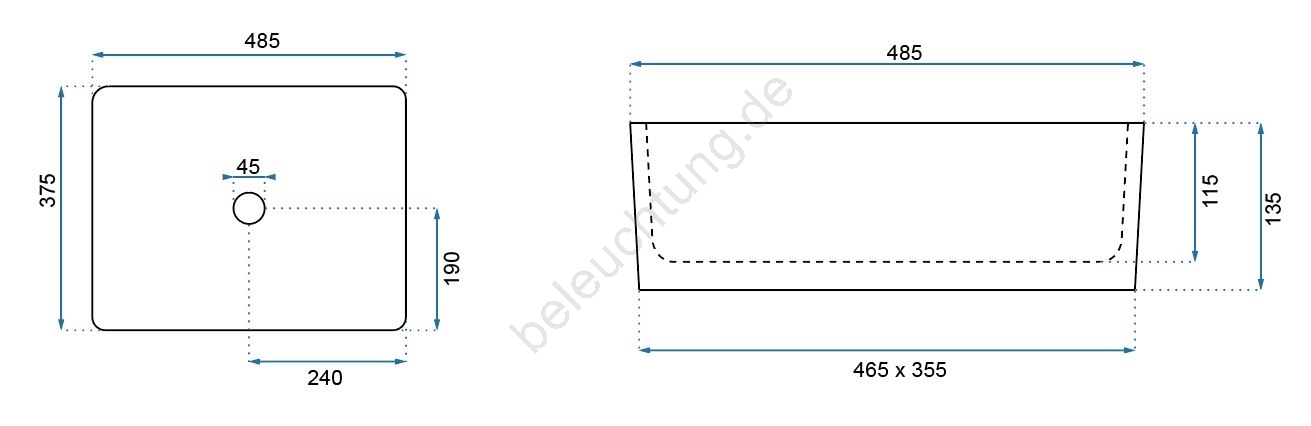 • Waschbeckenarmatur und Ablauf sind nicht im Lieferumfang enthalten.