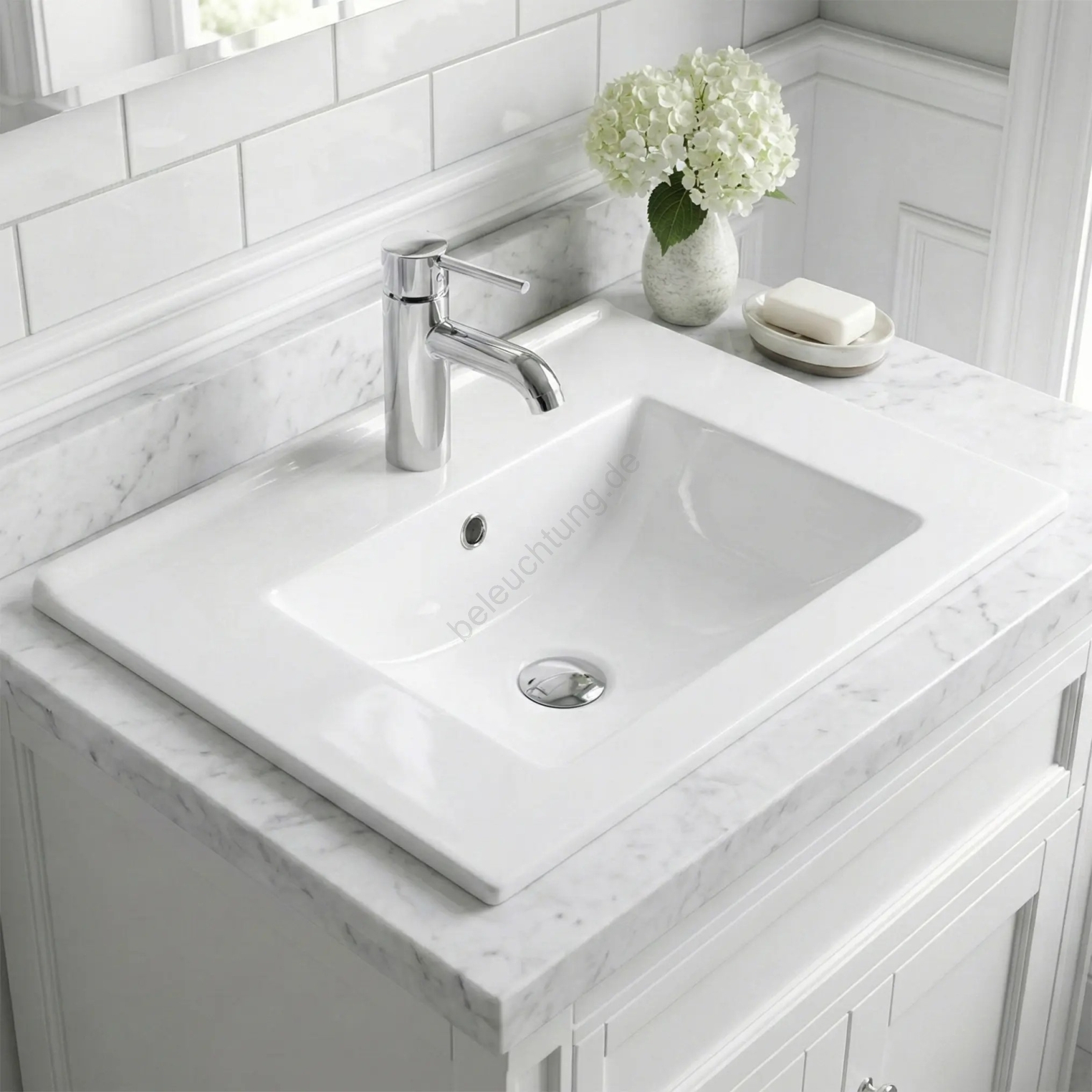 • Modernes, elegantes Einbauwaschbecken mit Überlauf.