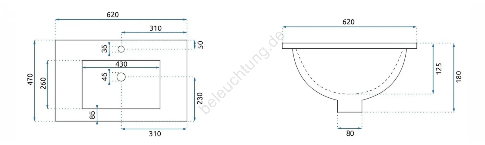 • Waschbeckenarmatur und Ablauf sind nicht im Lieferumfang enthalten.