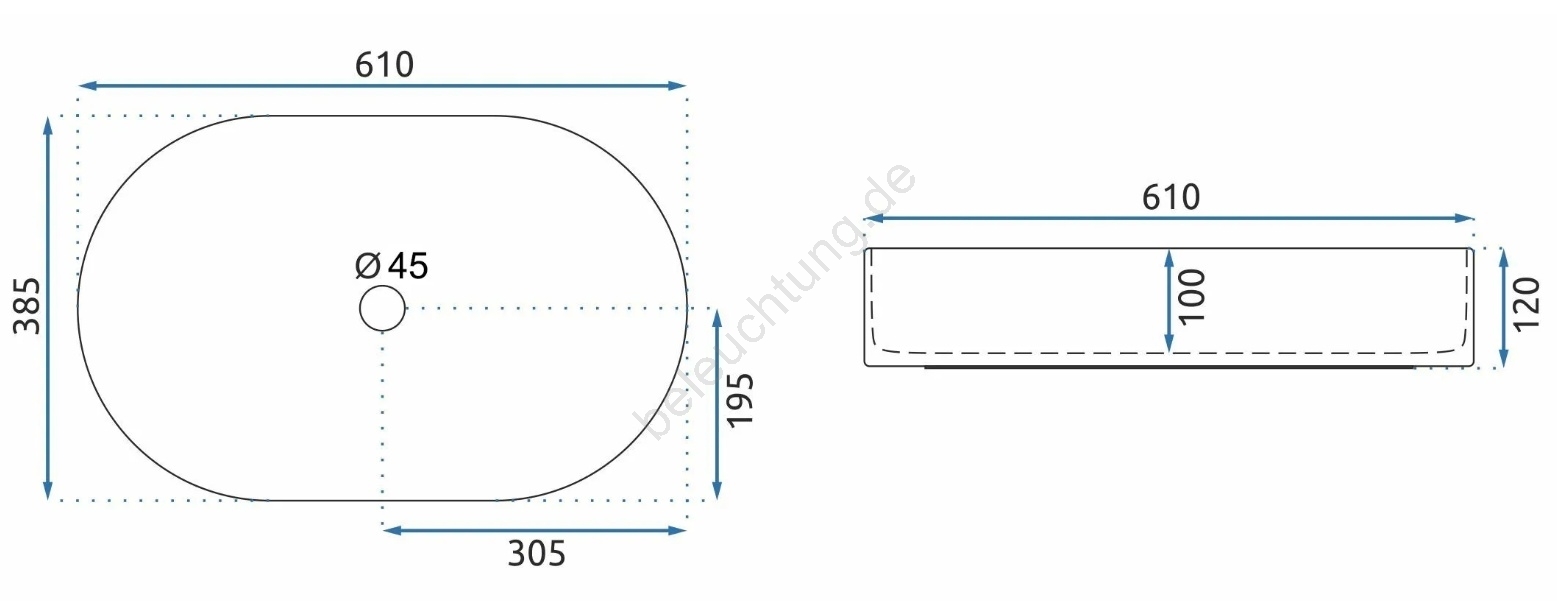 REA-U1055 - Aufsatzwaschbecken NADIA 38,5 x 61 cm, Keramik / Hochglanzweiß