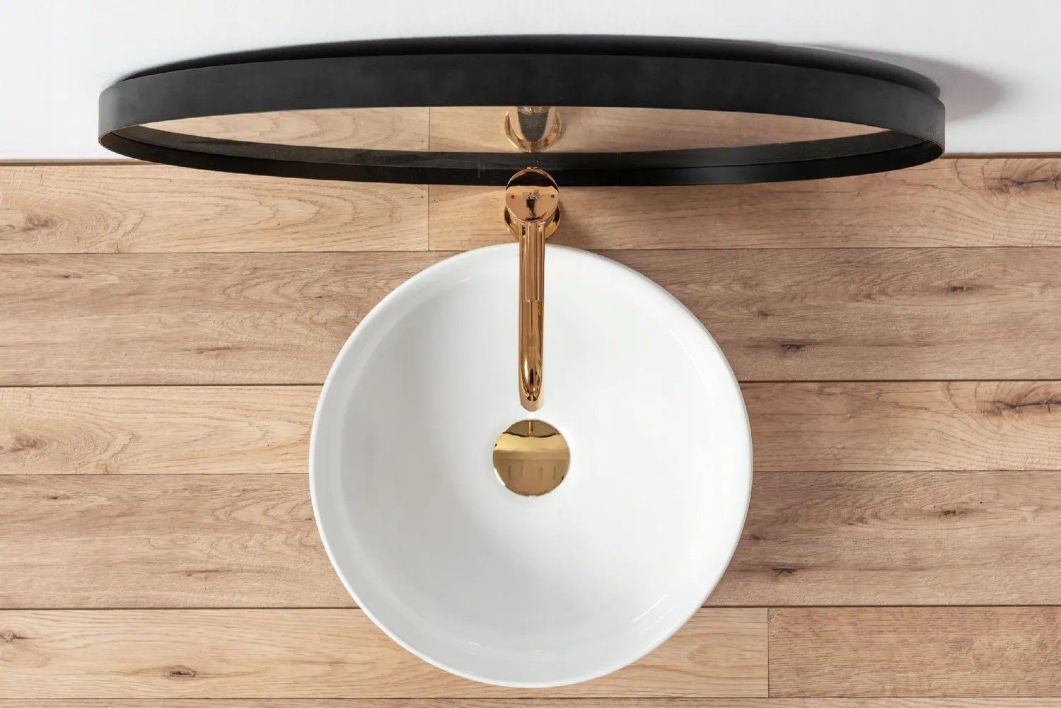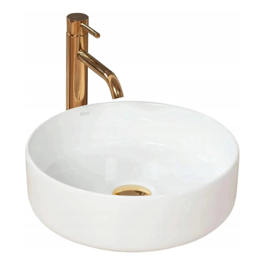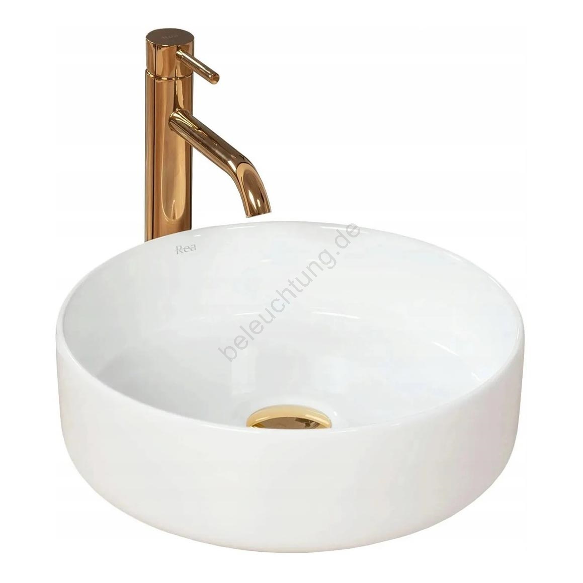 • REA-U6630 - Aufsatzwaschbecken SAMI Ø 36 cm Keramik/weiß/gebürstetes Gold