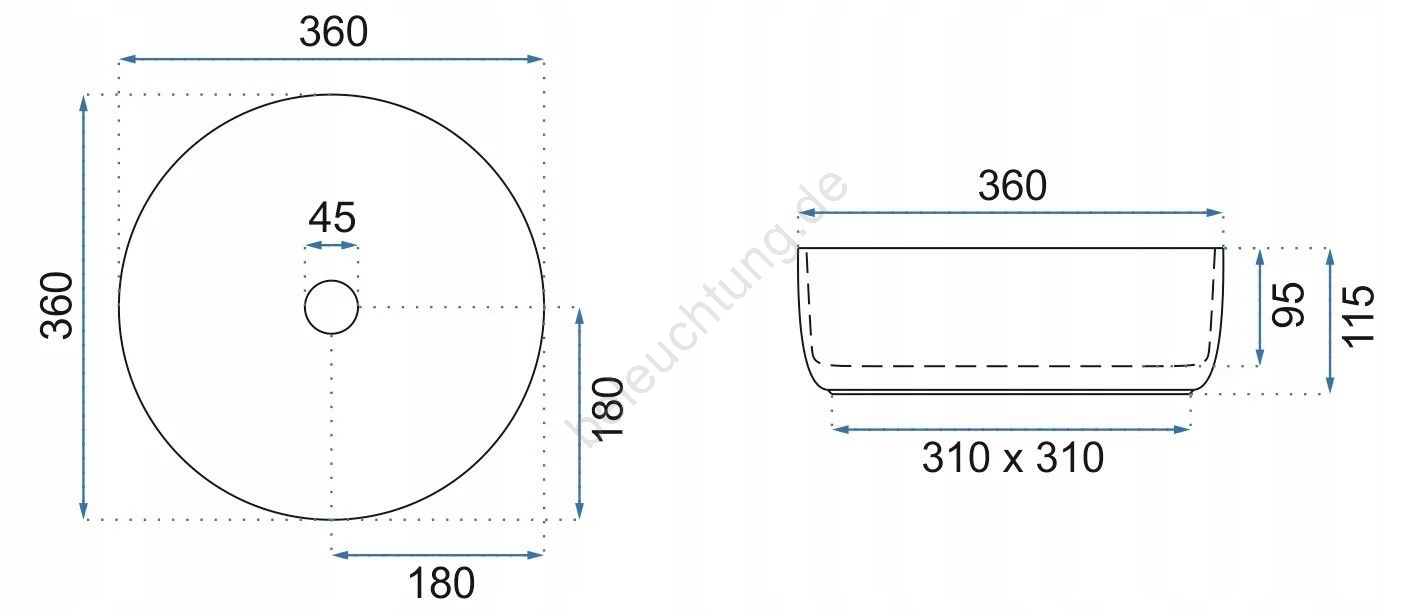 • REA-U18918 - Aufsatzwaschbecken SAMI Ø 36 cm Keramik/glänzend weiß