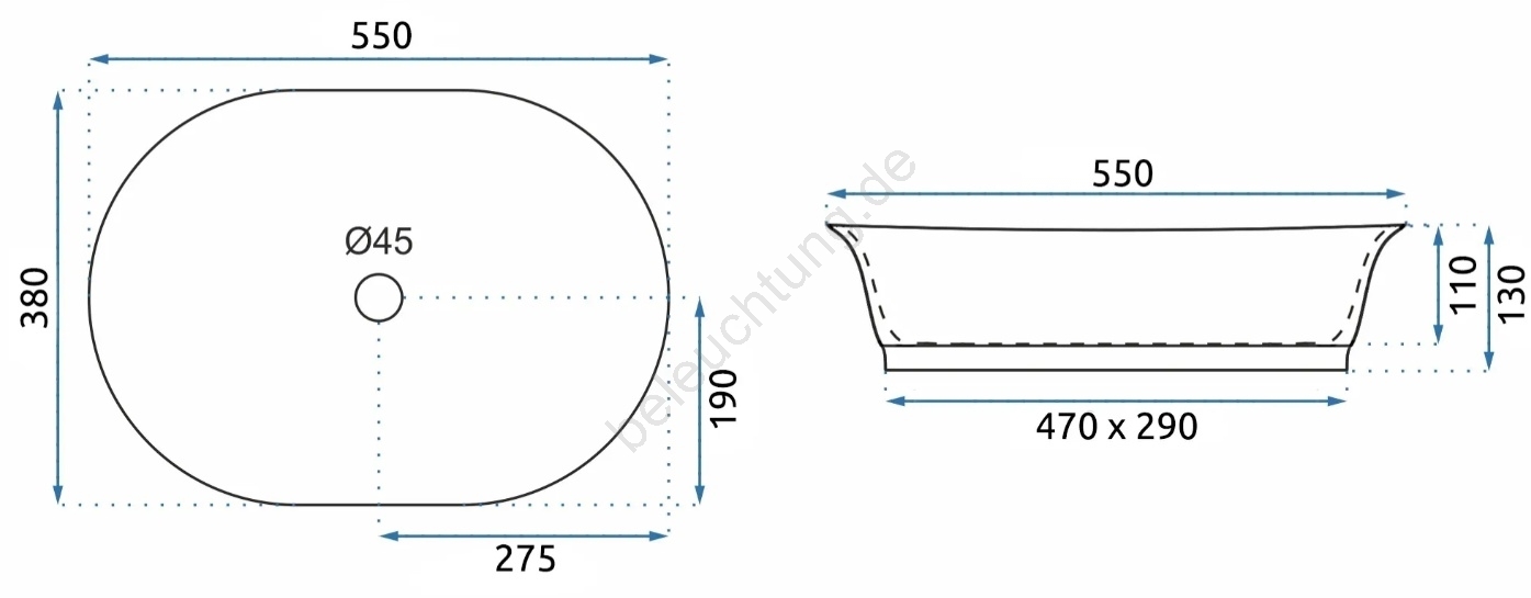 REA-U3305 -  Aufsatzwaschbecken WILMA RUSTIC 38x55 cm Keramik/kupferfarben