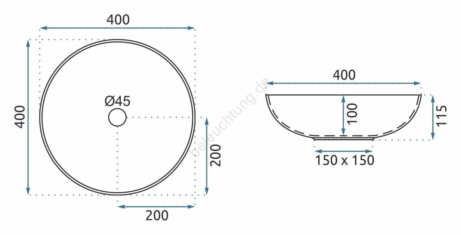 • Waschbeckenarmatur und Ablaufgarnitur sind nicht im Lieferumfang enthalten.